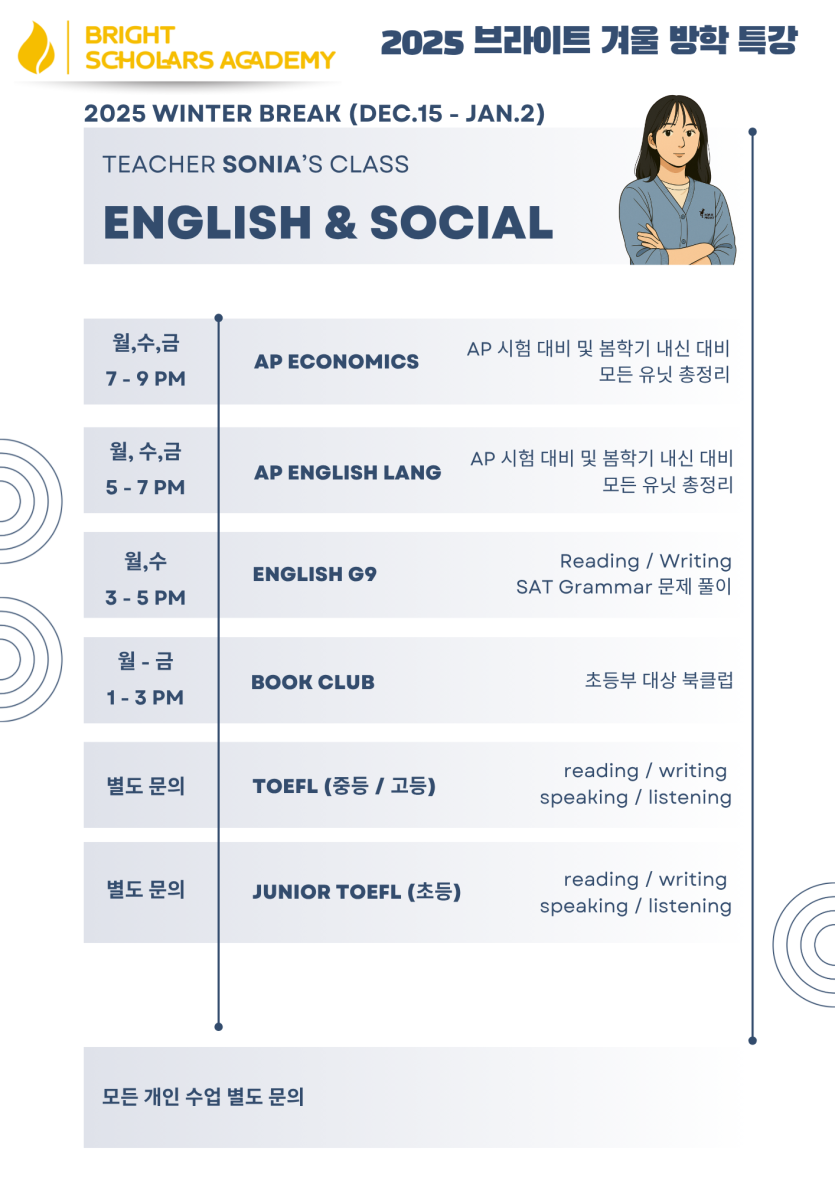 겨울방학 특강 안내 페이지 정보 작성자 관리자 작성일 25-12-10 12:24 조회 51 댓글 0 본문 겨울방학 특강 안내 다음글 2025 가을 학기 수업 안내 댓글목록 0 등록된 댓글이 없습니다.